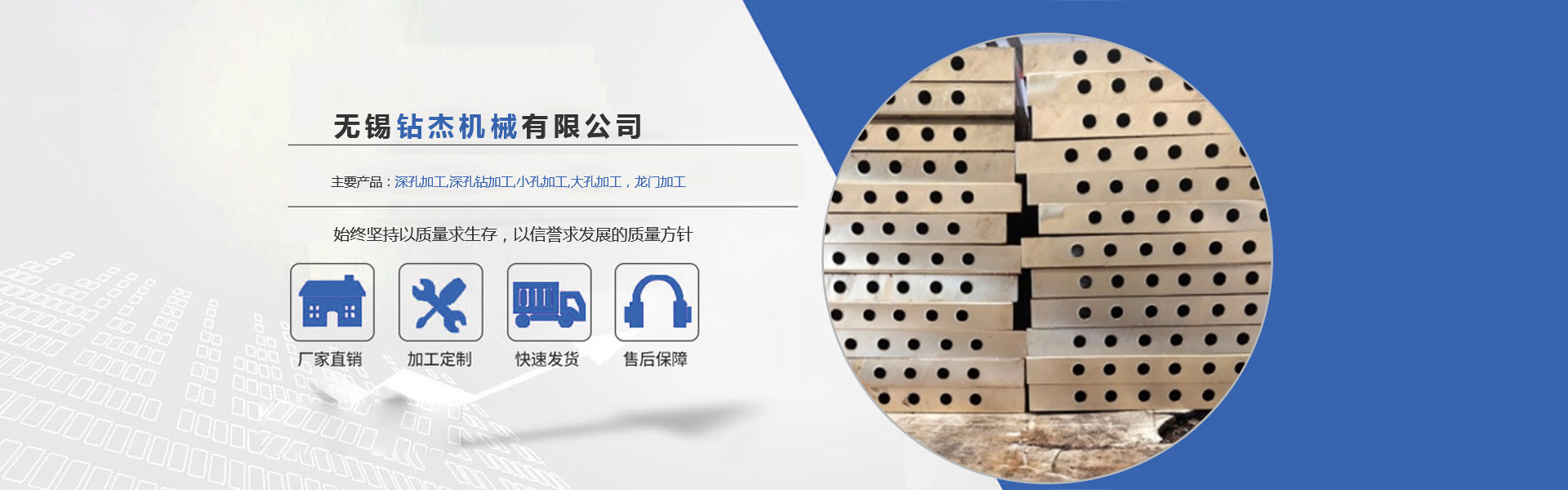 無錫鉆杰機械有限公司成立于2012年,位于無錫市堰橋工業園堰新東路18號,公司一家專業通用機械及其配件的制造、加工、銷售。專業承接深孔加工深孔鉆加工小孔加工、大孔加工等服務。